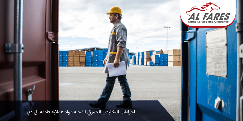 اجراءات التخليص الجمركي لشحنة مواد غذائية قادمة الى دبي