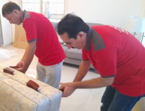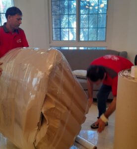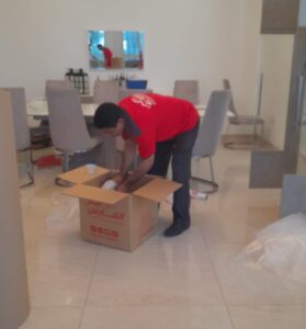 قبل البدء في عمليات نقل وشحن الأثاث سواء براً أو بحراً أو جواً يجب في البداية استلام الأثاث سواء من باب العميل أو في مستودع الشركة ،حيث يتم تغليف قطع الأثاث بمواد التغليف المناسبة و الآمنة لكل قطعة ،ومن ثم تعبئة قطع الأثاث الصغيرة التي تتطلب تعبئتها في صناديق وحمايتها بواسطة اغلفة وربط الصناديق و تحضير قائمة التعبئة مع فاتورة و بيان التصدير اللازم..