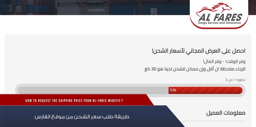 طريقة طلب سعر الشحن من موقع الفارس؟
